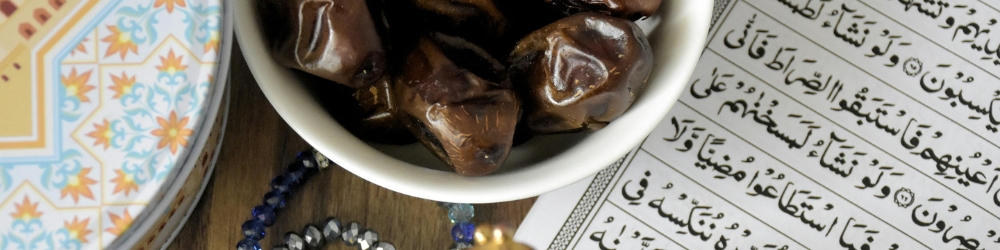 To provide a religious context, the items in a display for welcoming back from Umrah should ideally include an image of the Kaaba or Islamic calligraphy on a frame behind or beside the banner.